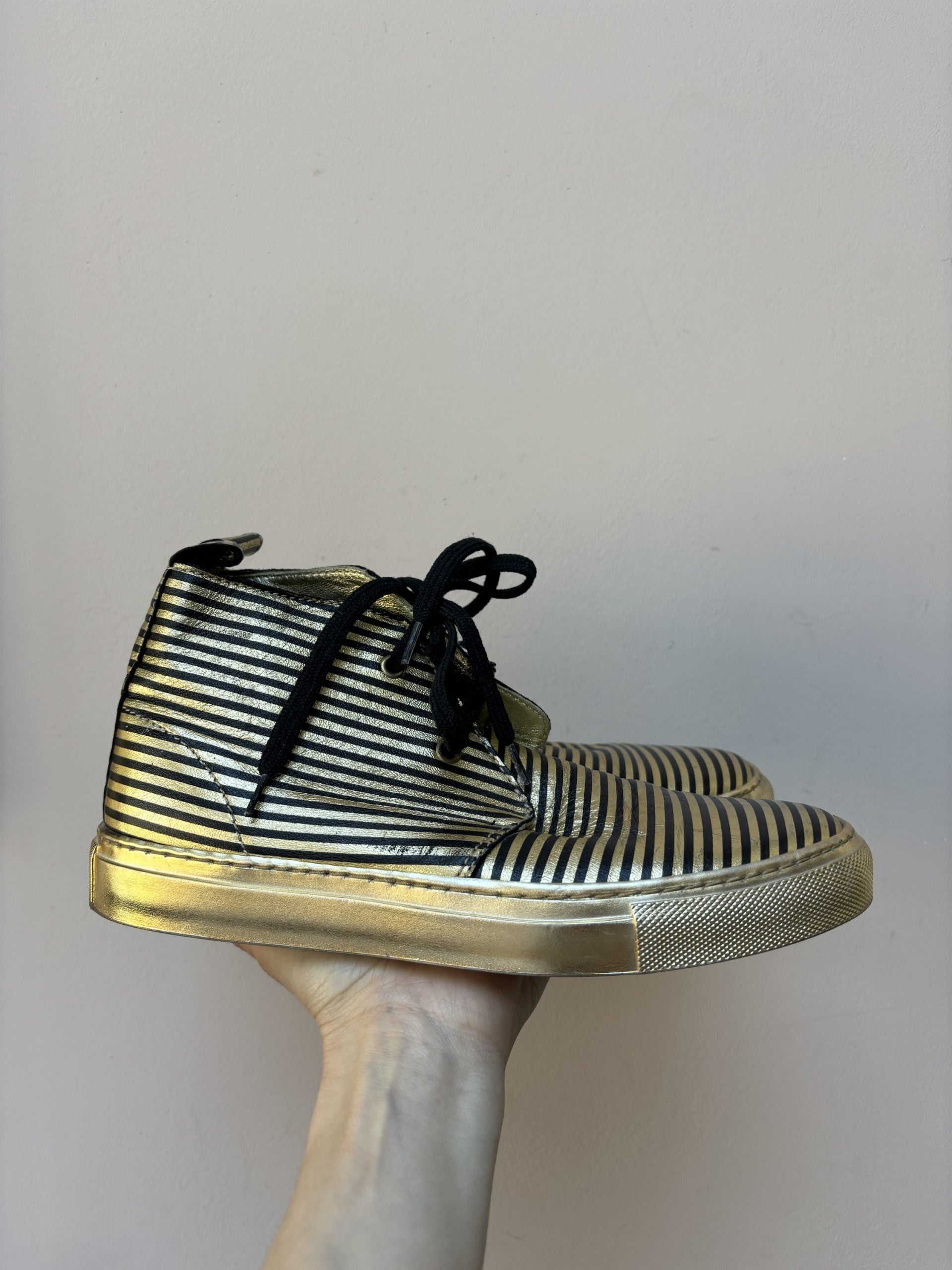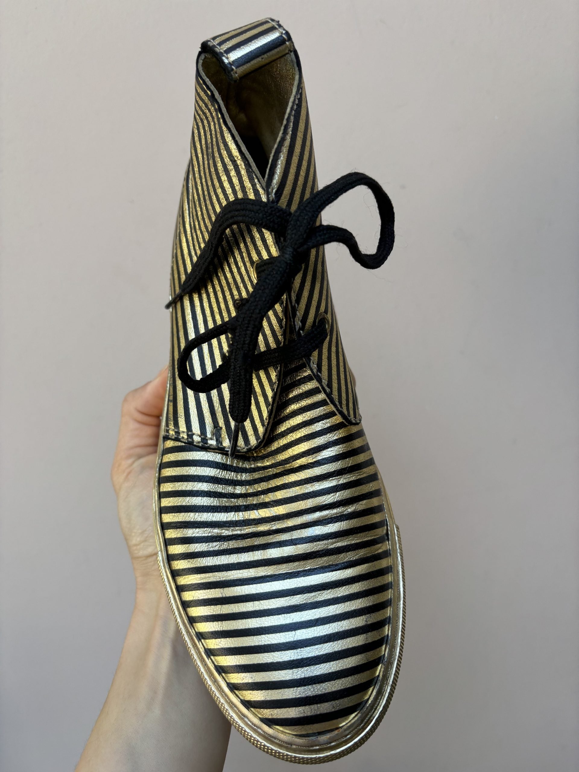 Sonia Rykiel gold black leather boots size UK4.5