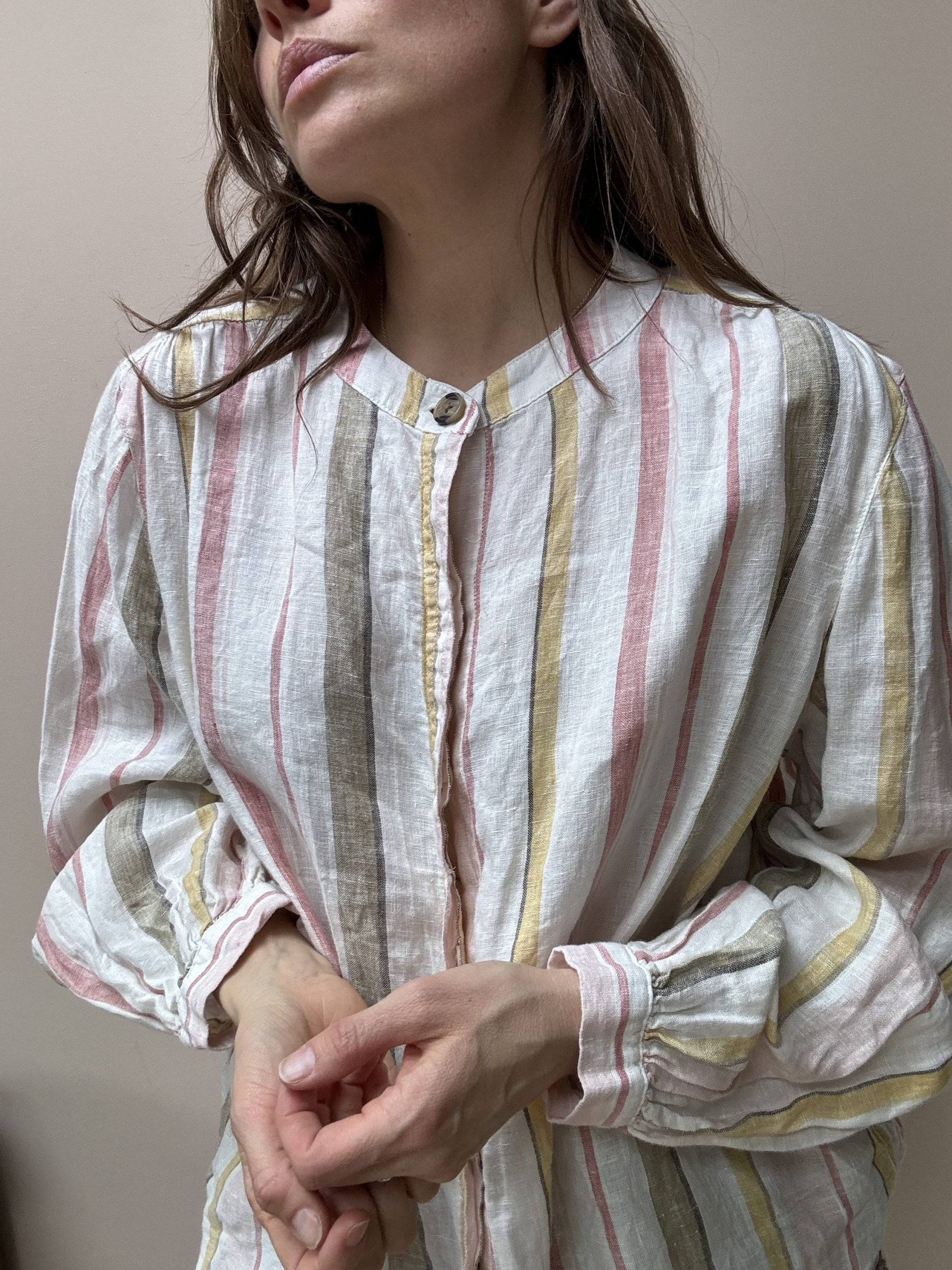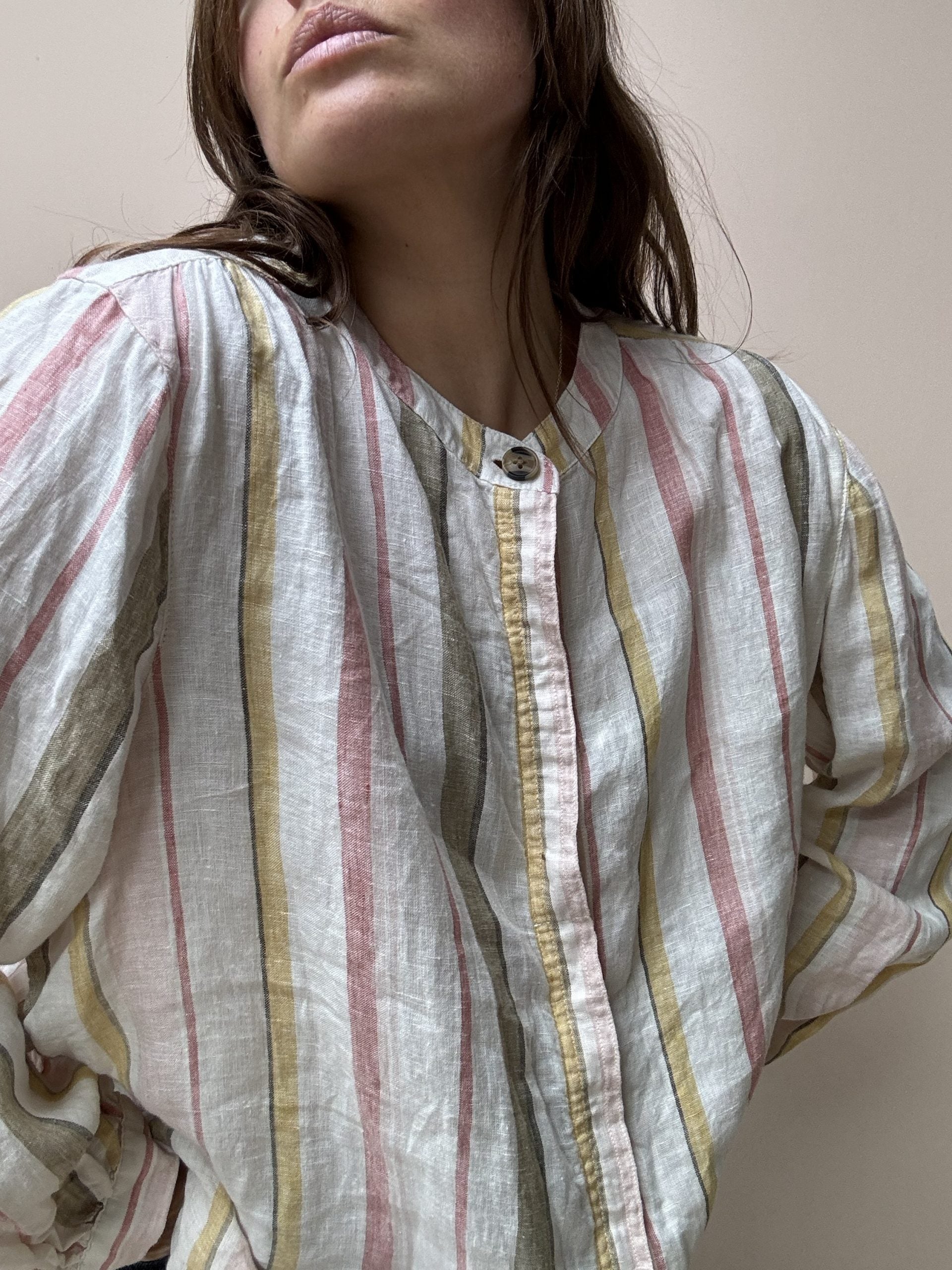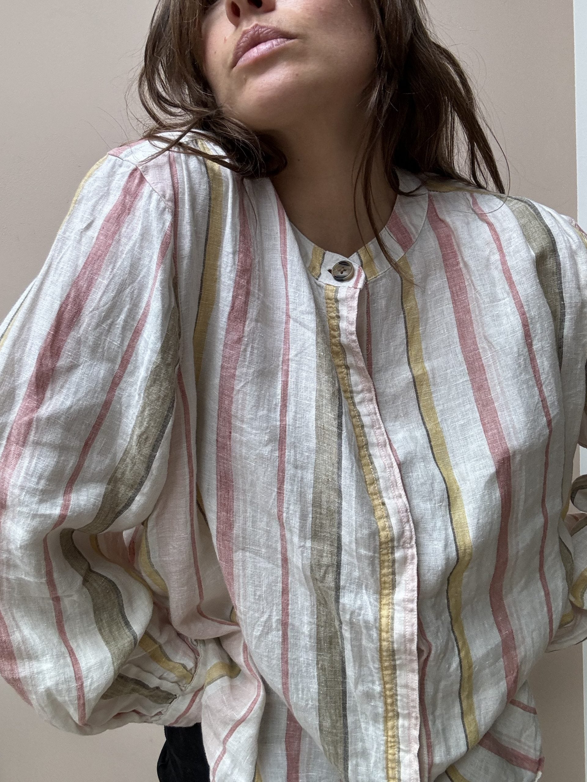 Size 20 but could be worn oversized from a size 14/16 in my opinion. Gorgeous coloured stripes in a pale dusky tone. Amazing balloon sleeves. It's utterly gorgeous!
