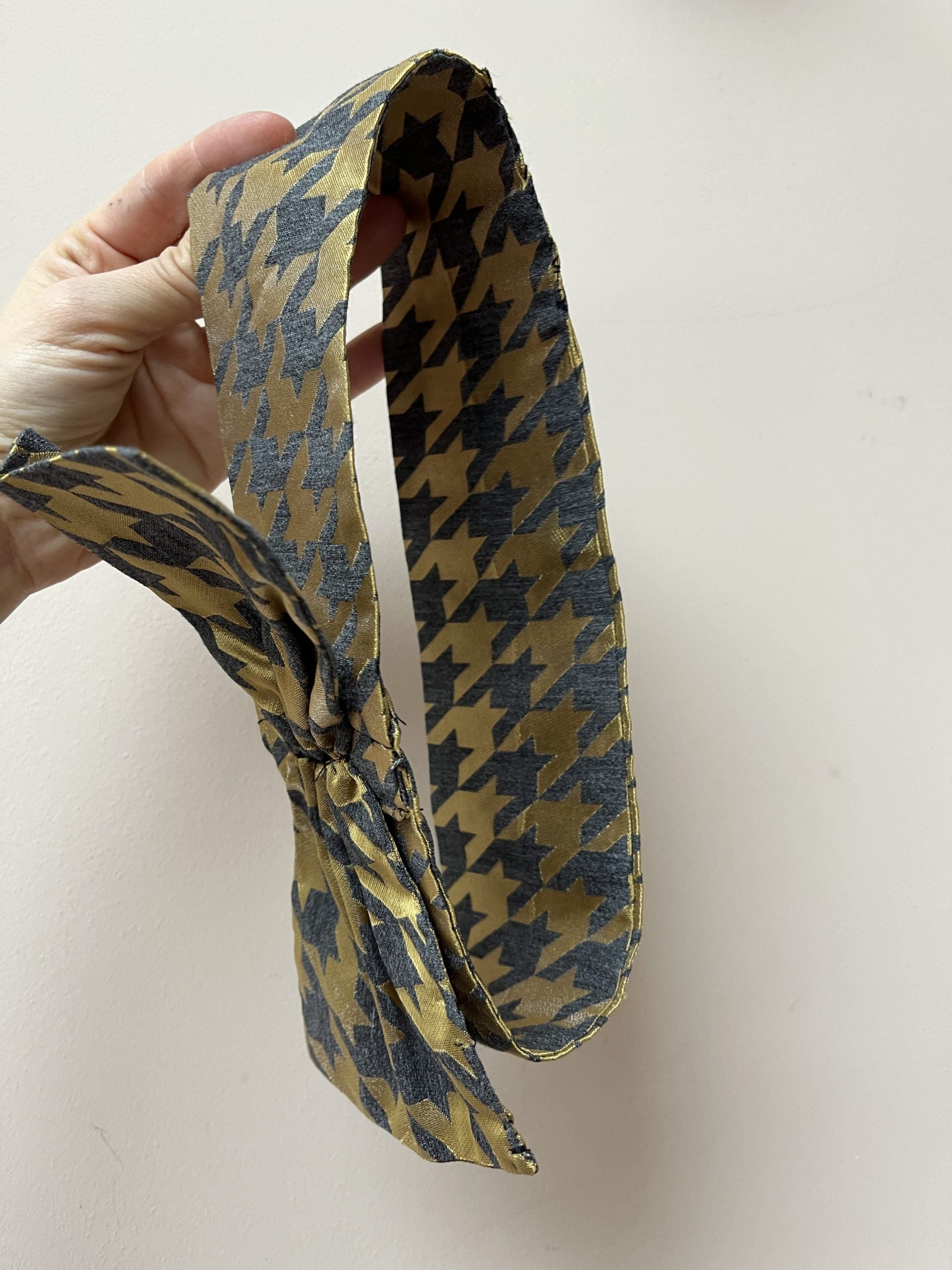 Gold and grey houndstooth headband with bow