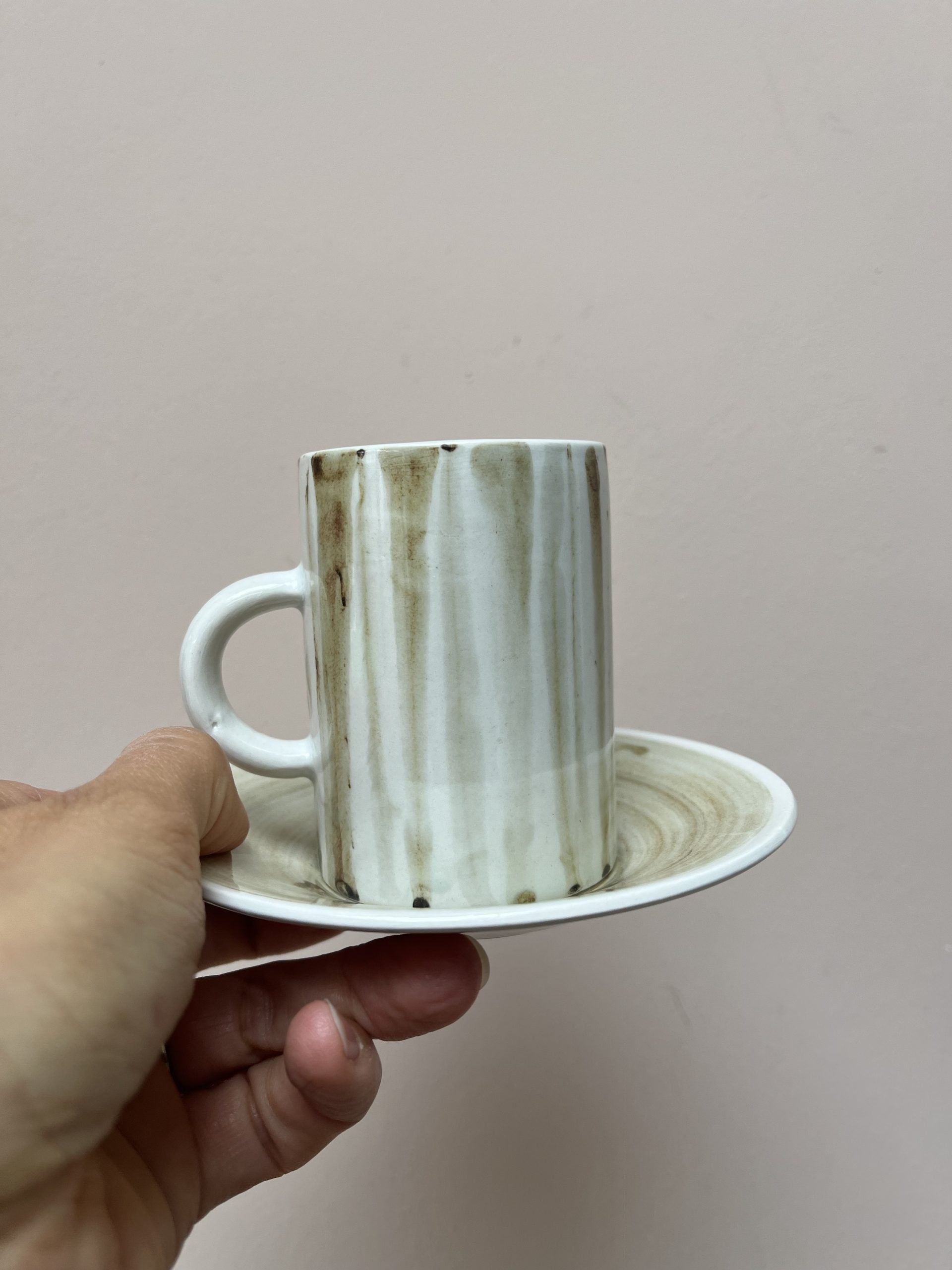 Lovely sets from Cinque Ports Pottery The Monastery Rye. Love the colour and the print on these. Perfect for your morning coffee