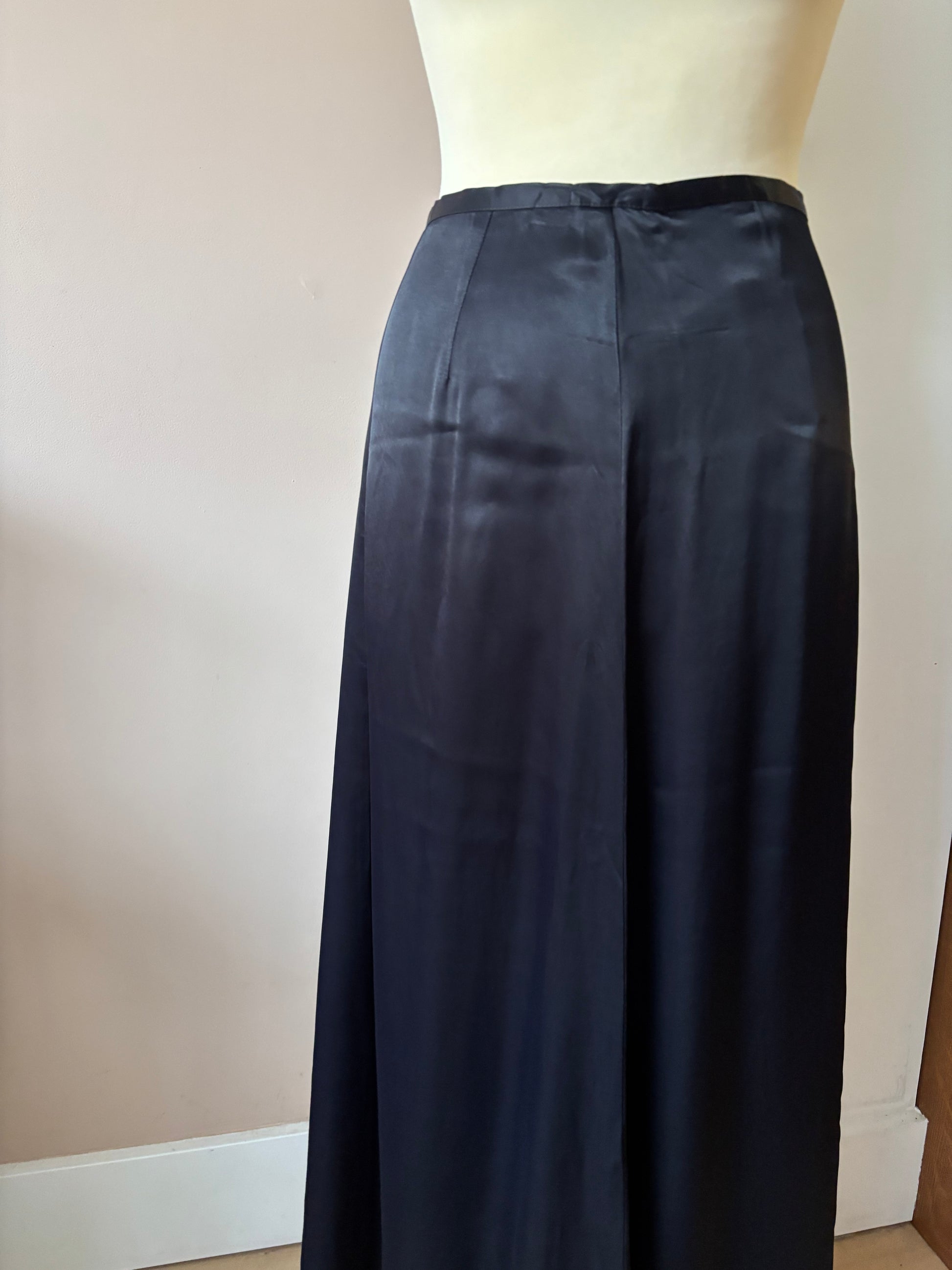 Black satin style long skirt size 10