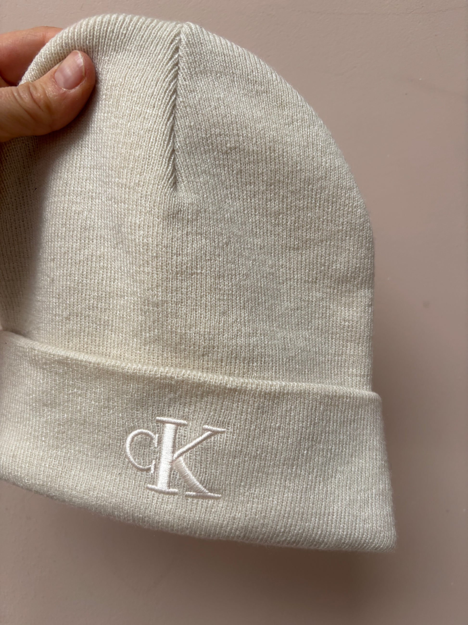 Cream Calvin Klein beanie One Size