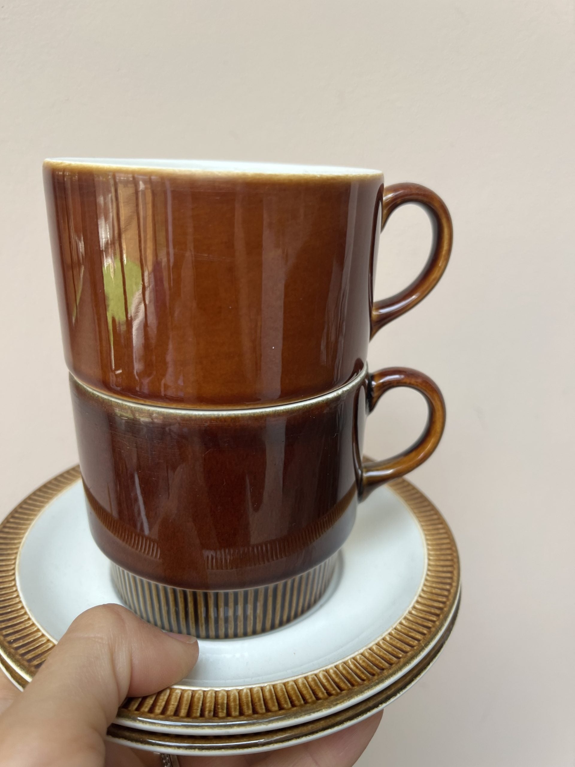 Poole Pottery vintage breakfast cups and saucers x 2