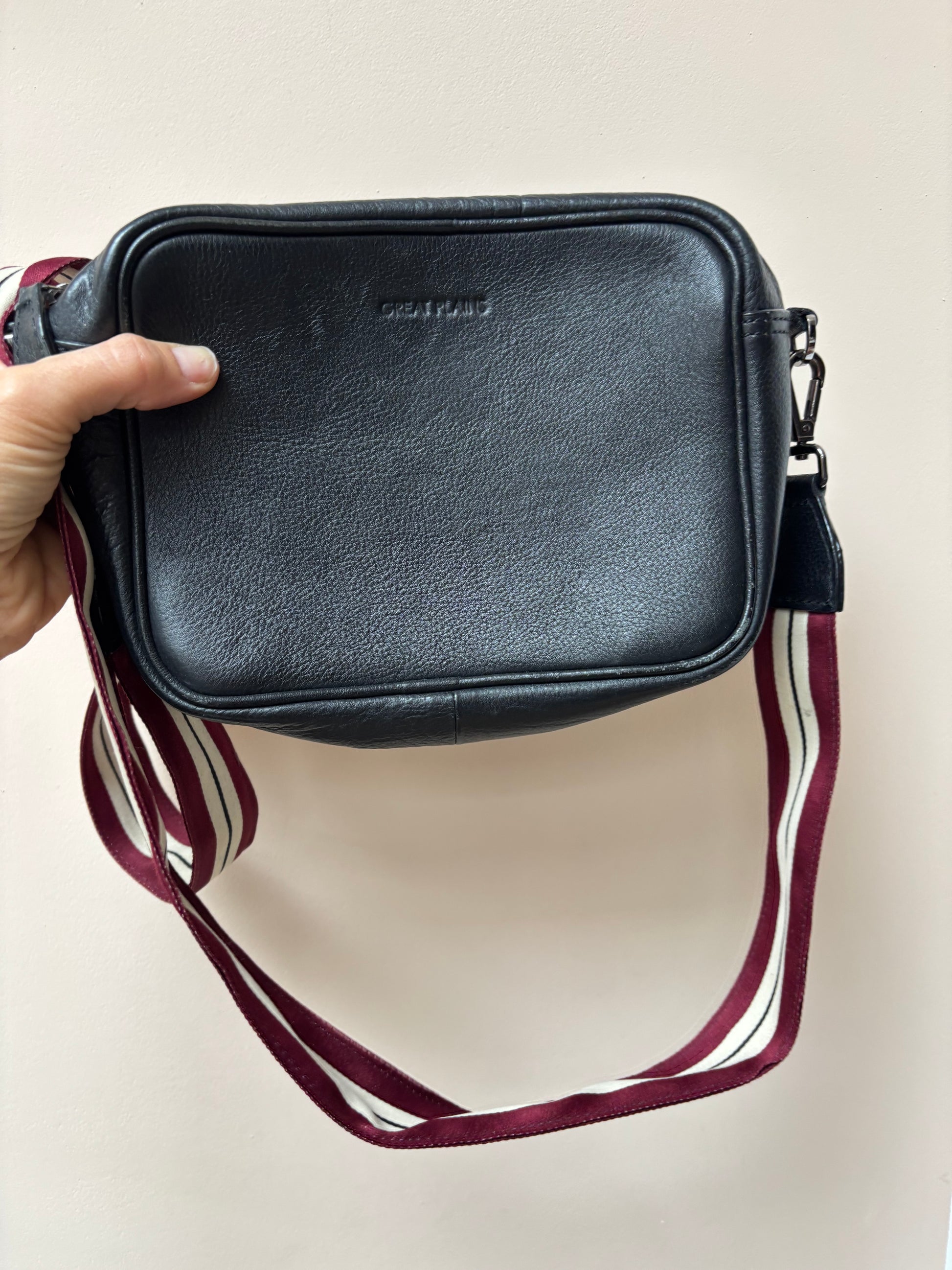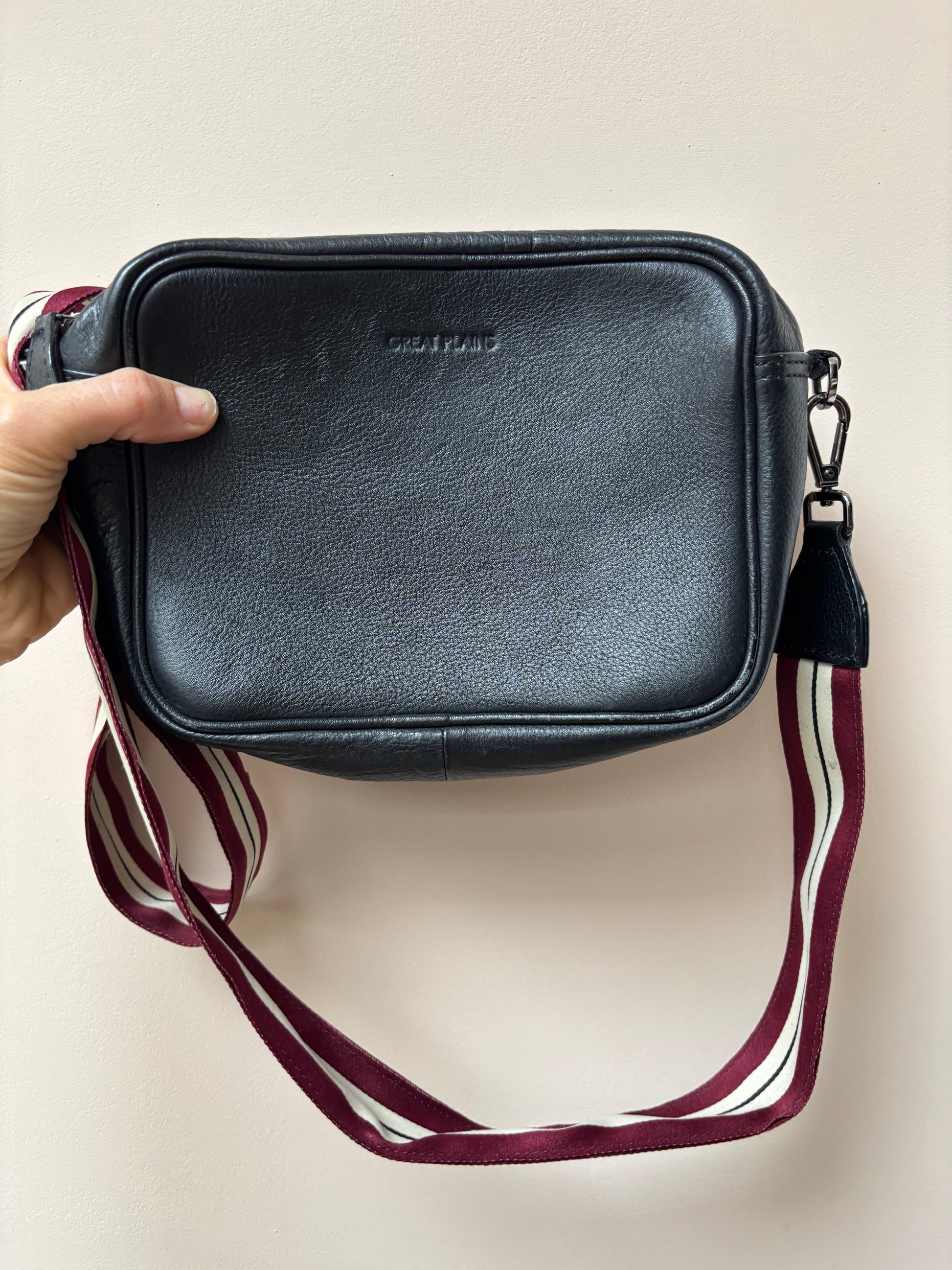 Great Plains black leather bag with fabric strap