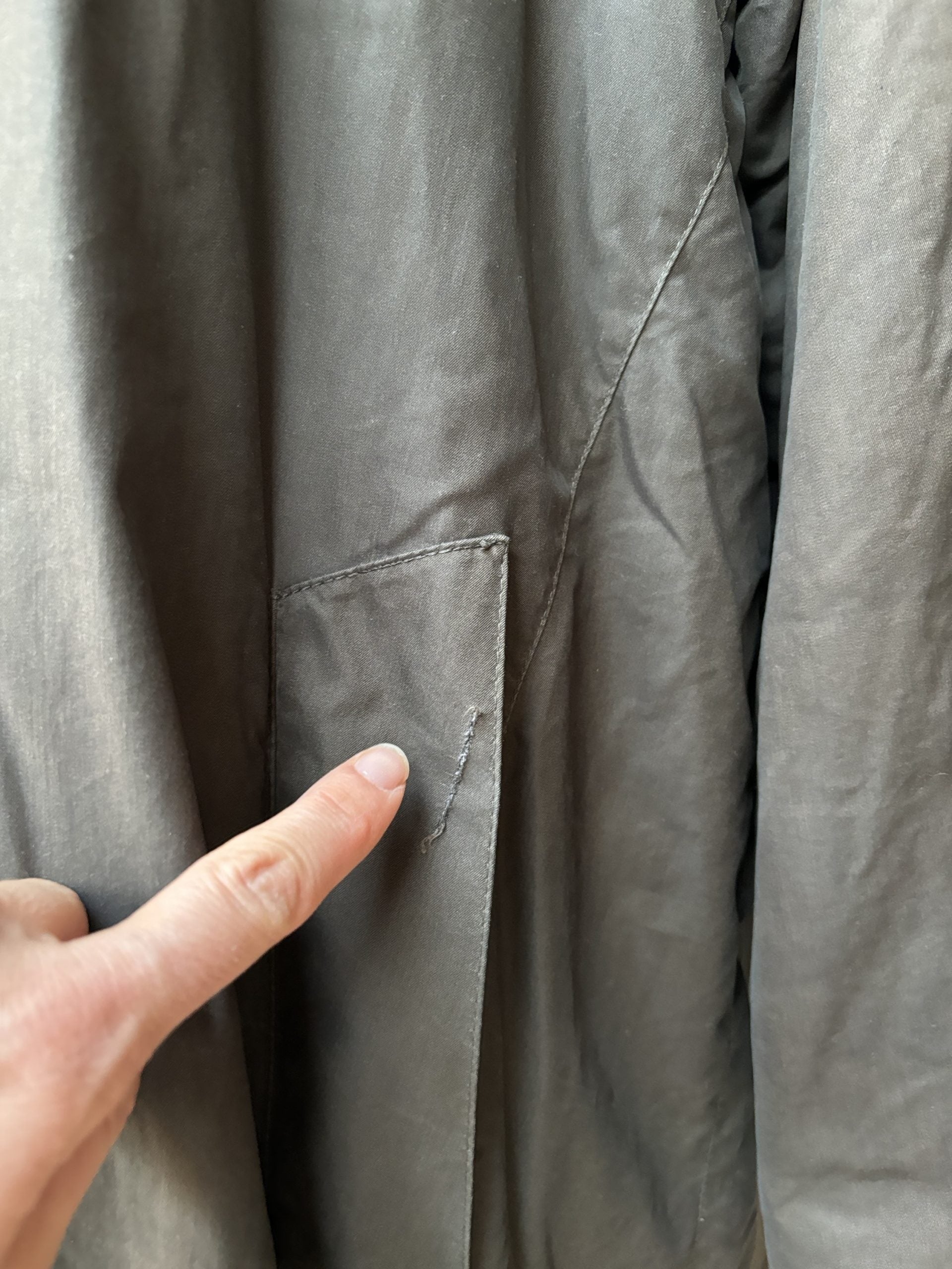 Oversized fit. Size 38 but I reckon best fit size 12-16. A small tear on one pocket as shown