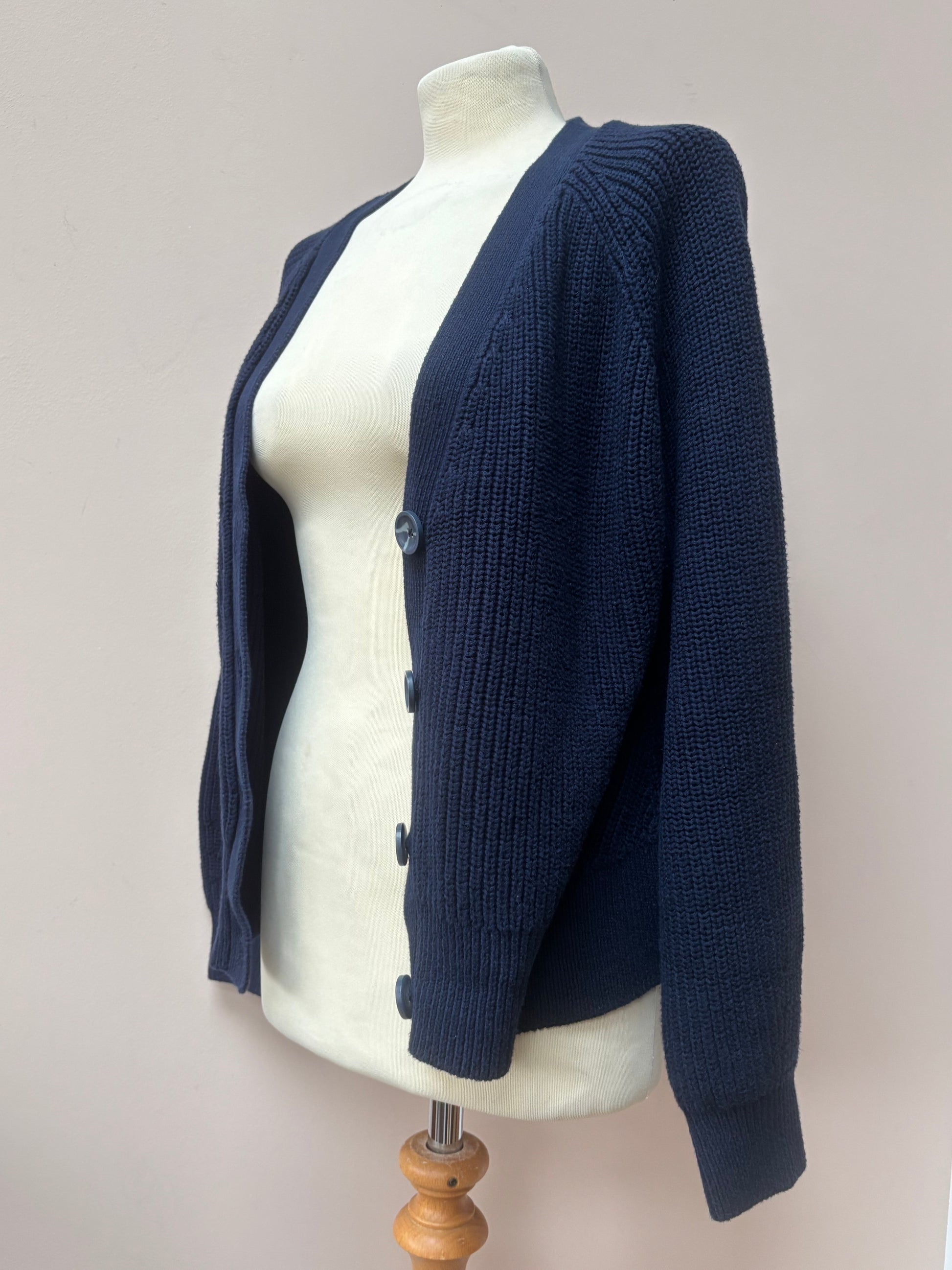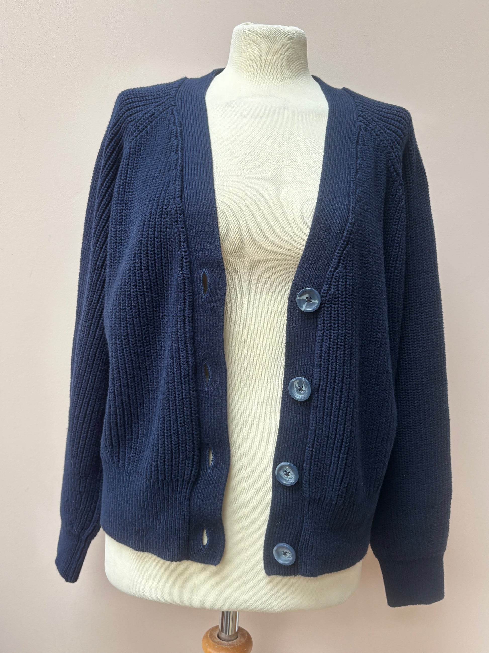Size large but I think best for size 12 or slightly oversized on a size 10. Thick heavy cotton, soft, lovely quality