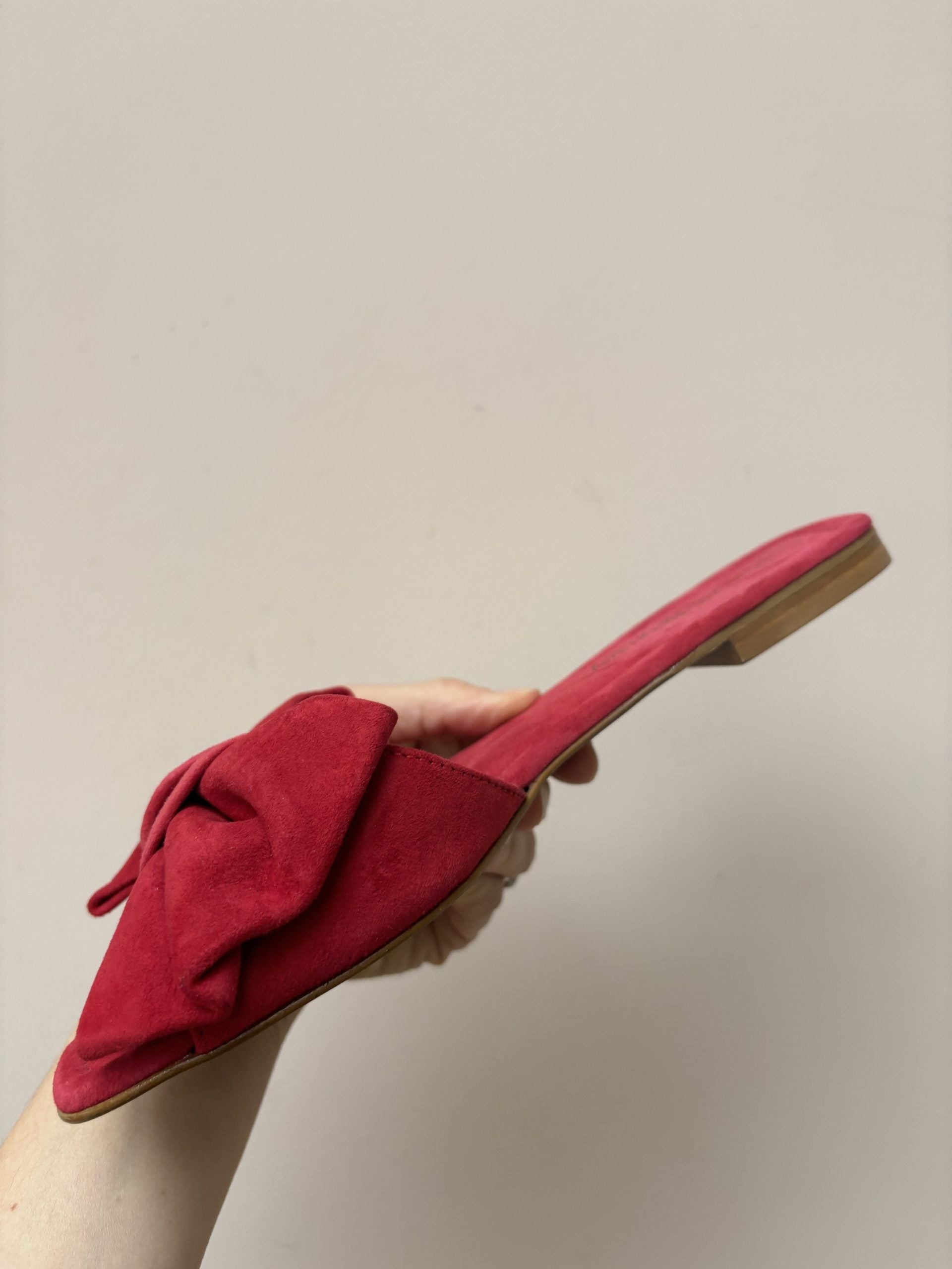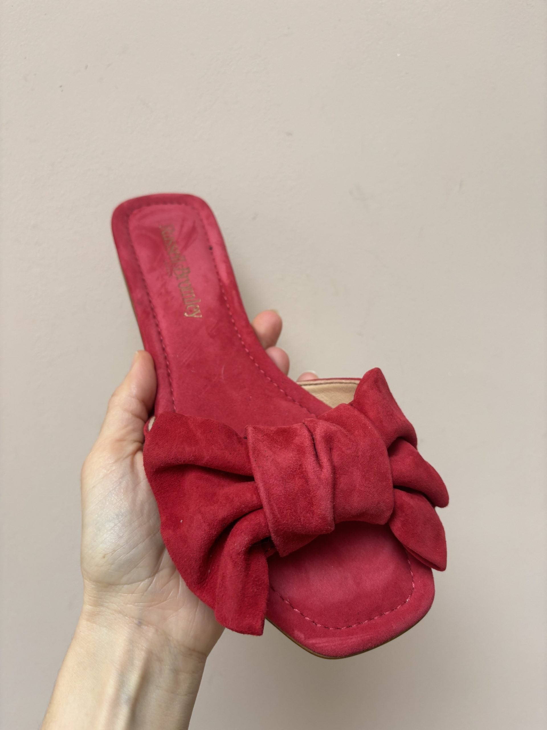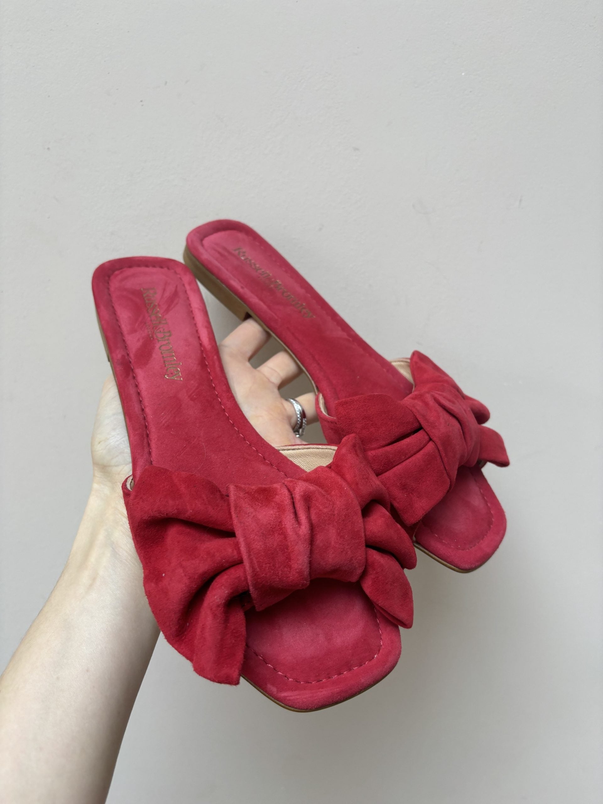 Stunning Russell & Bromley red suede bow flats size UK5.5