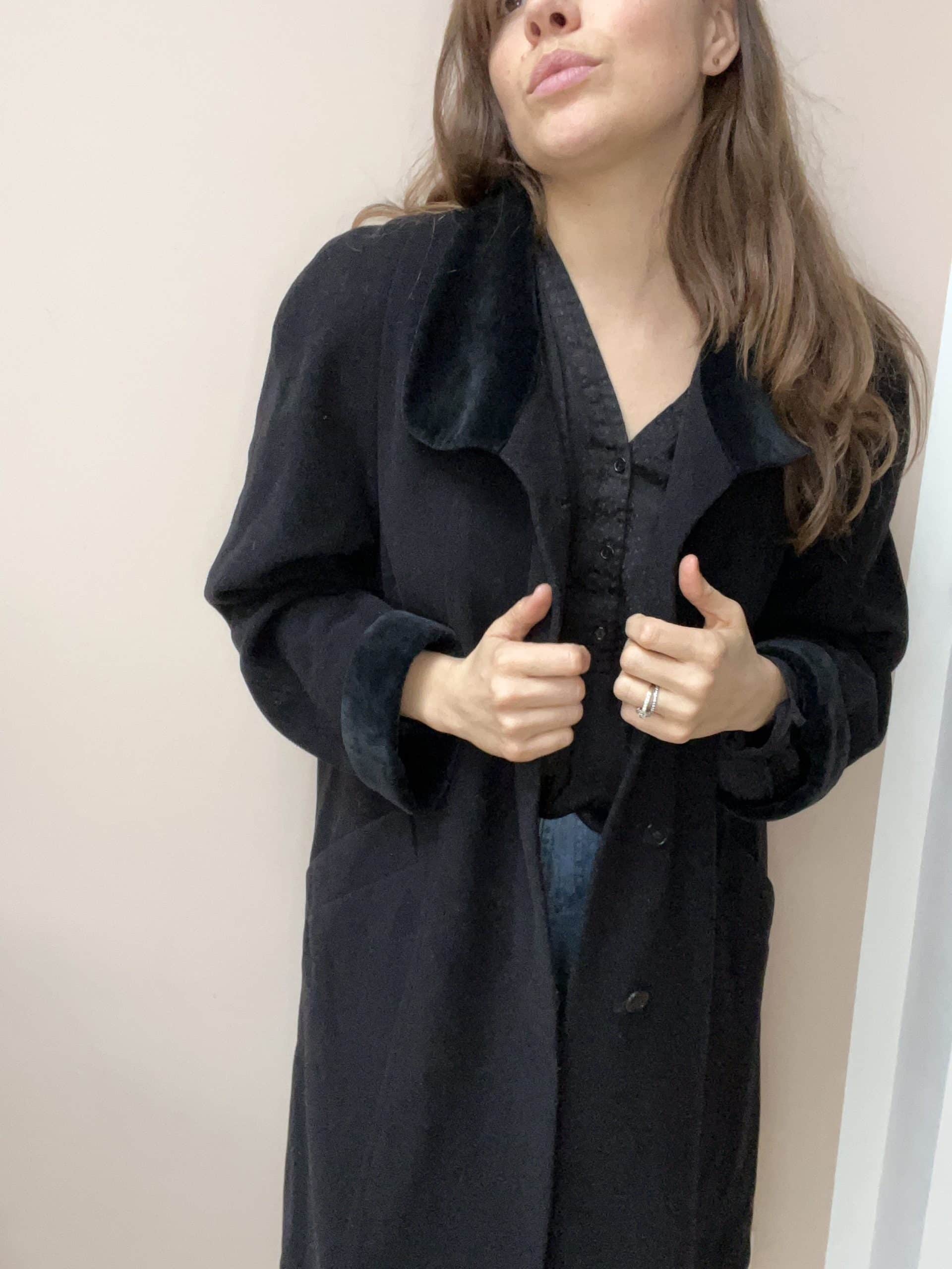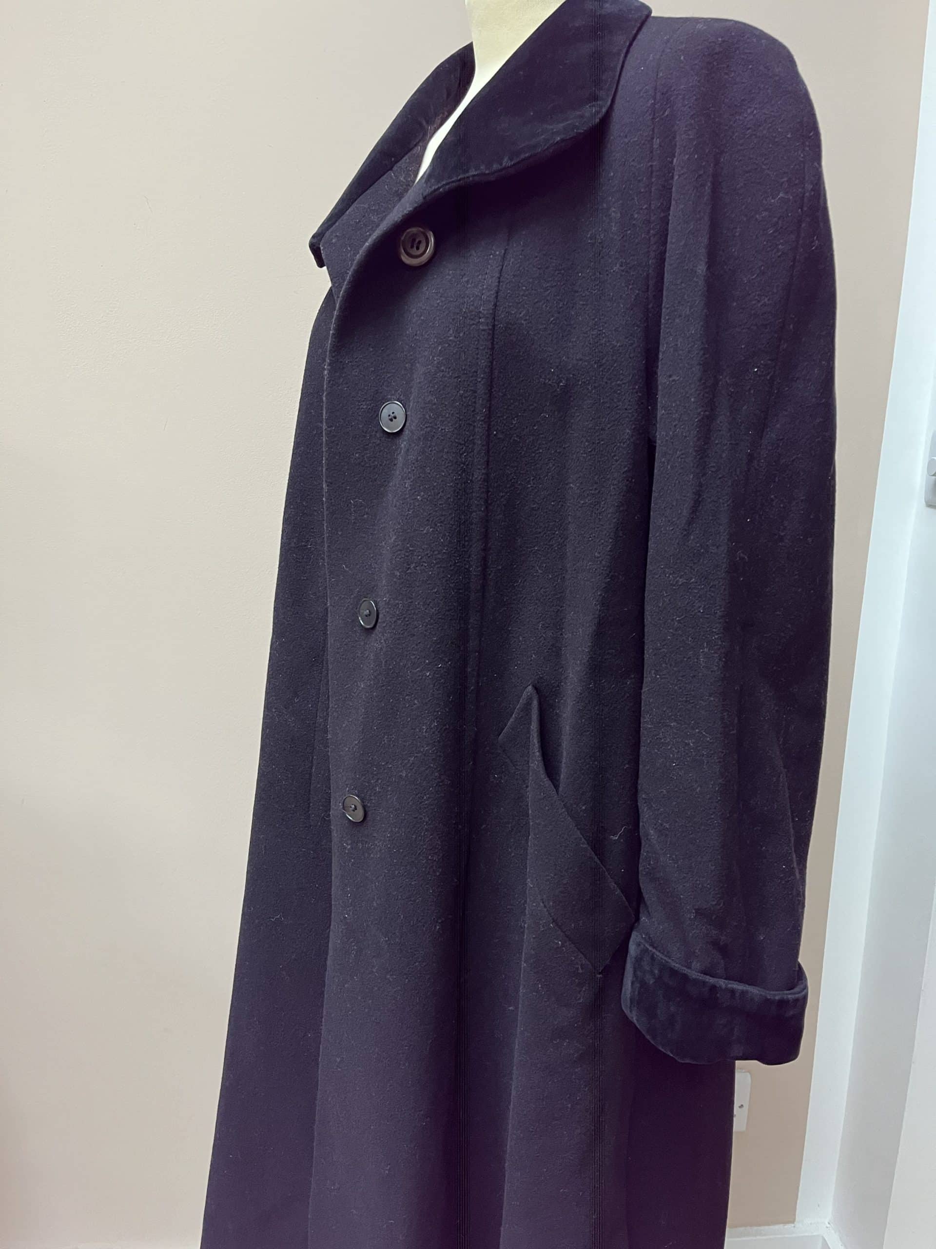 Vintage wool cashmere mix black coat with velvet collar and cuffs size 38