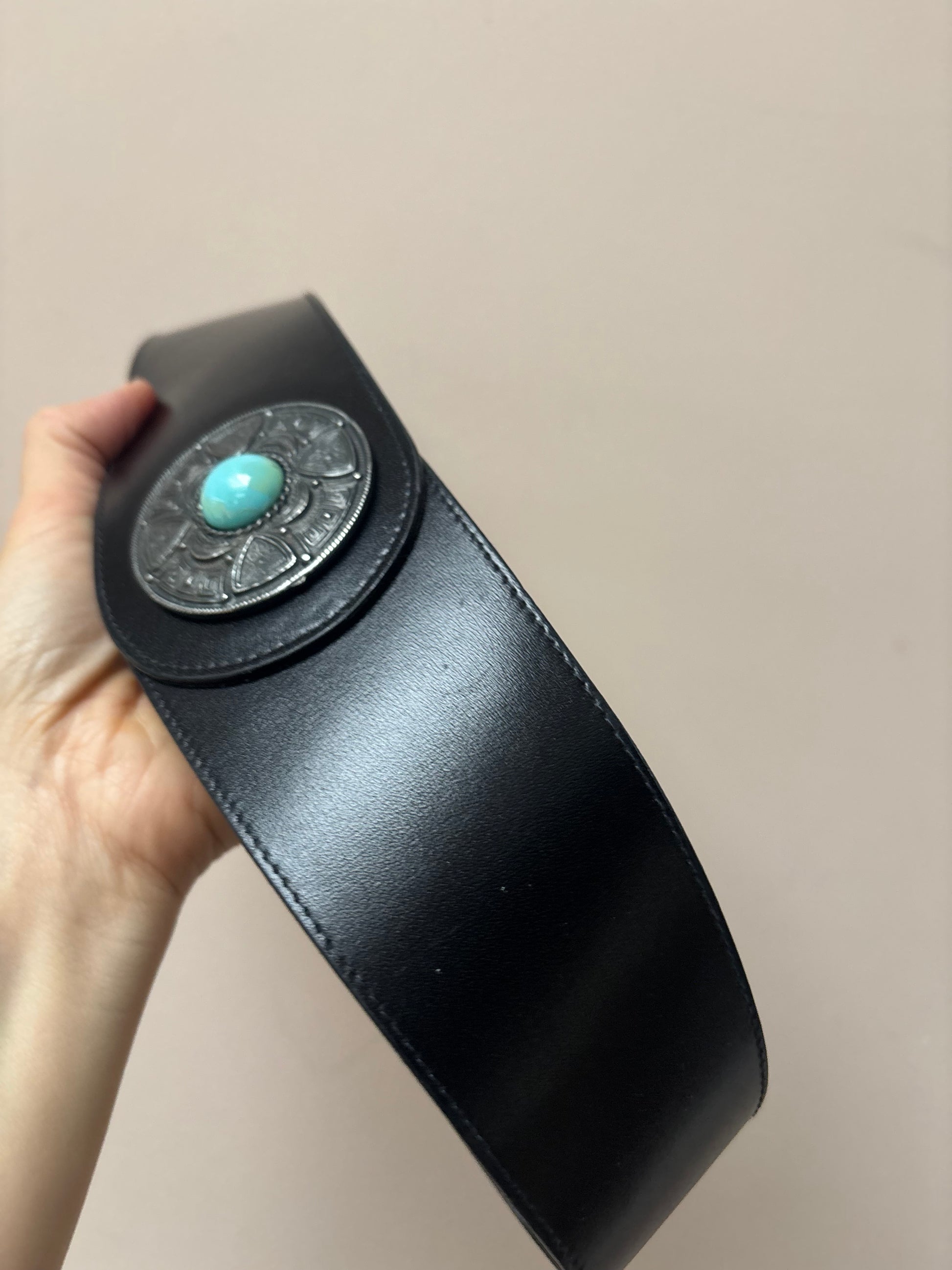Vintage black leather waist belt size Small