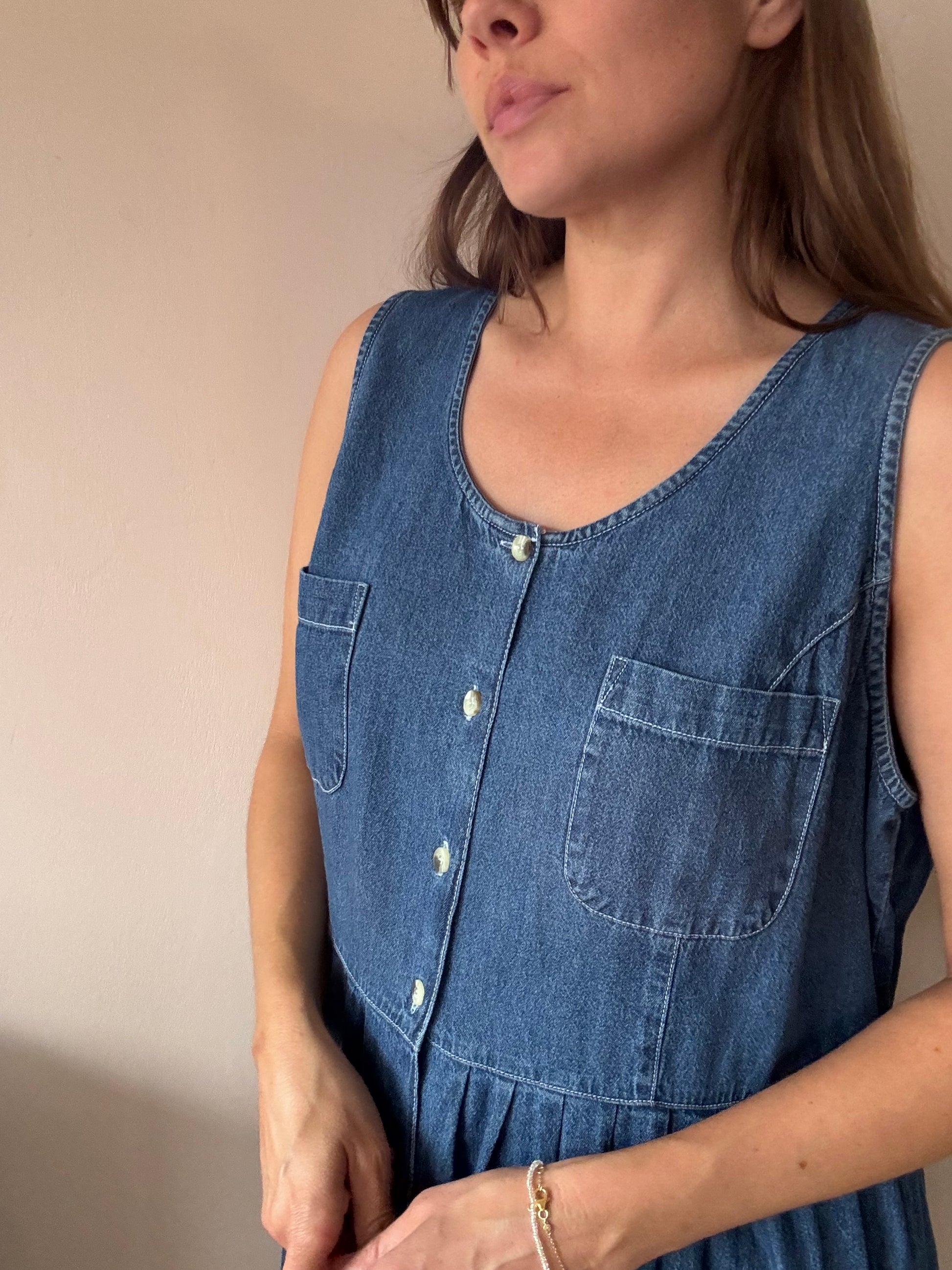 Vintage denim dress 100% cotton size 14/16
