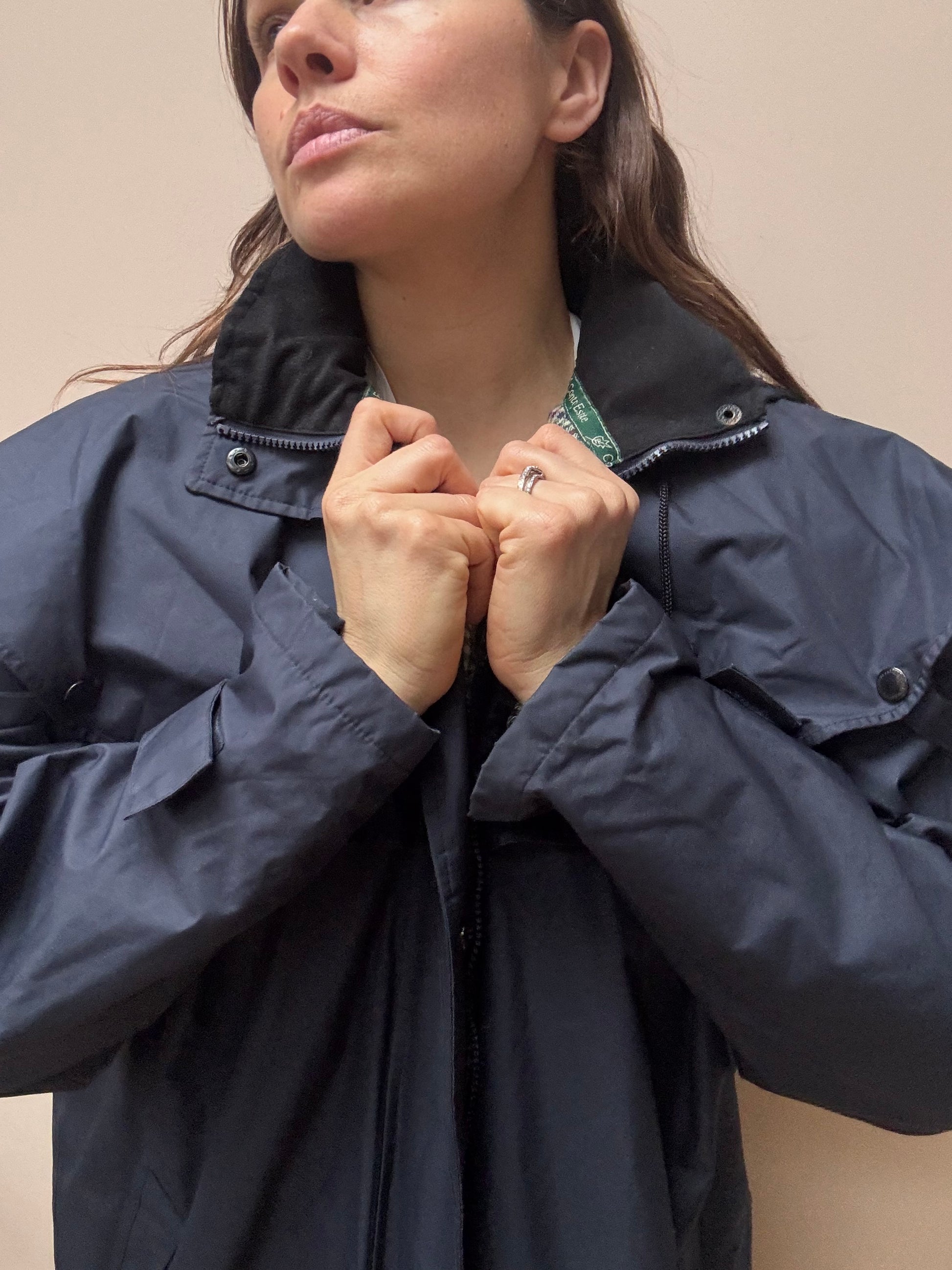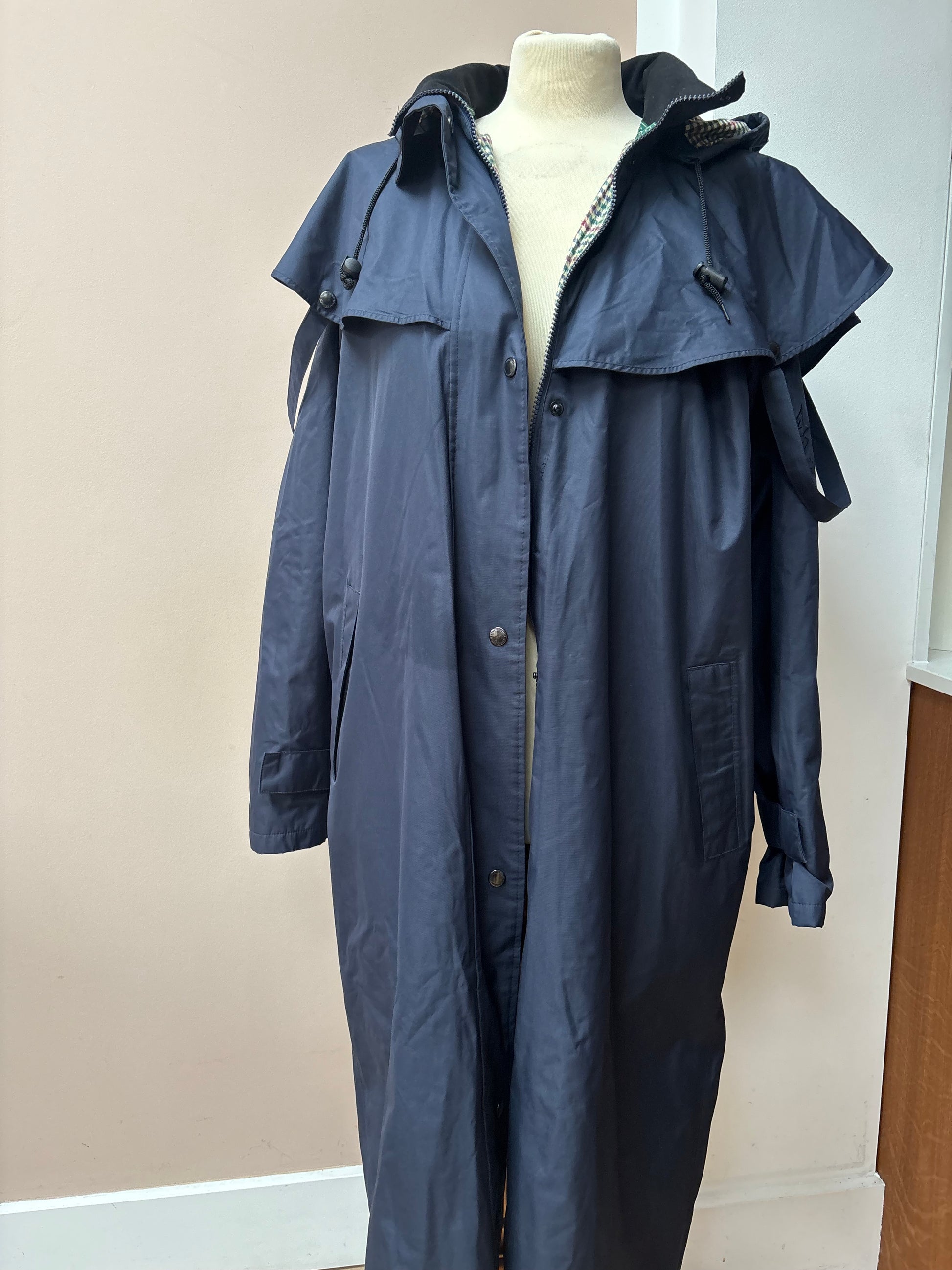Vintage long navy waterproof jacket size 12/14