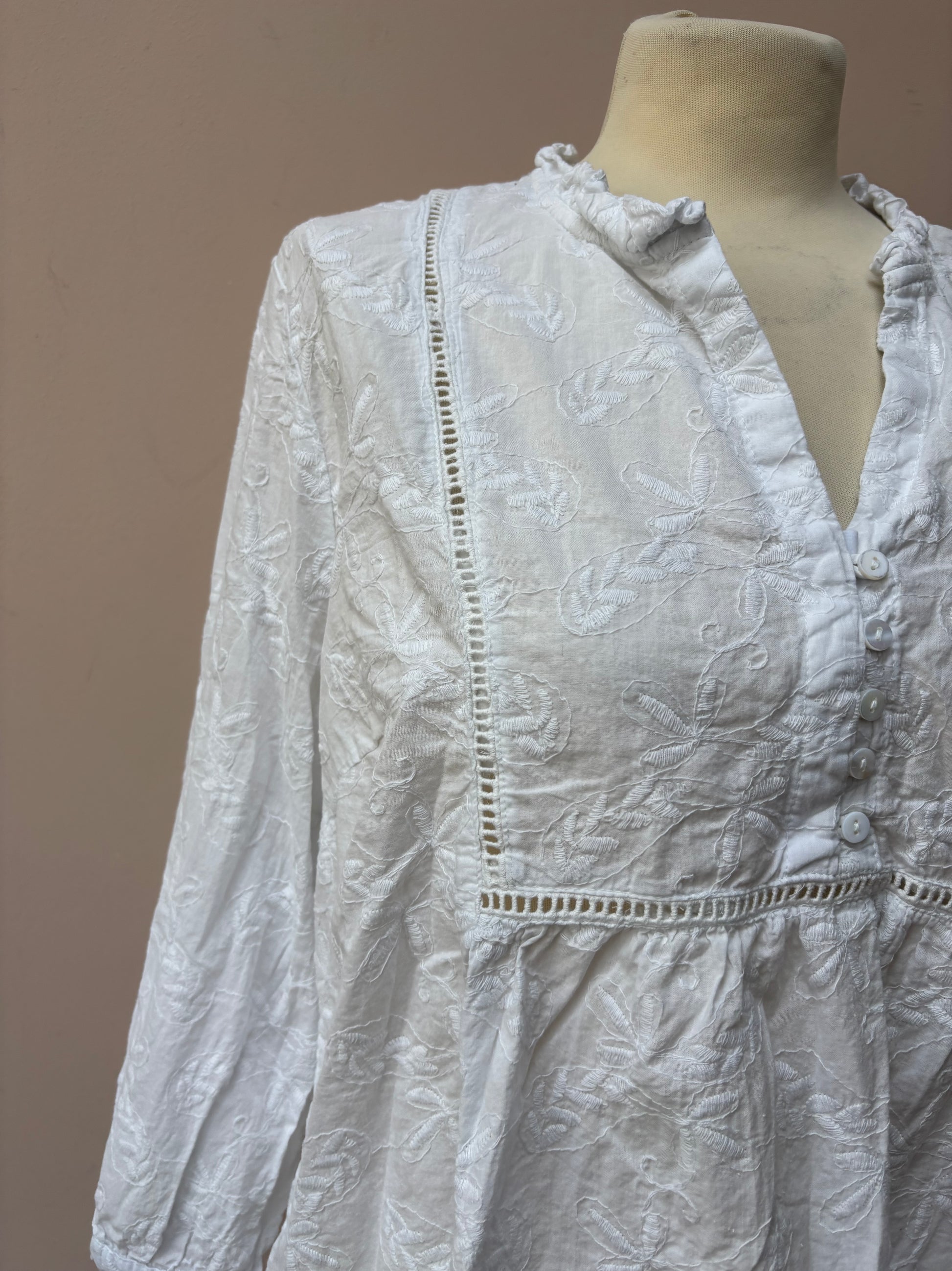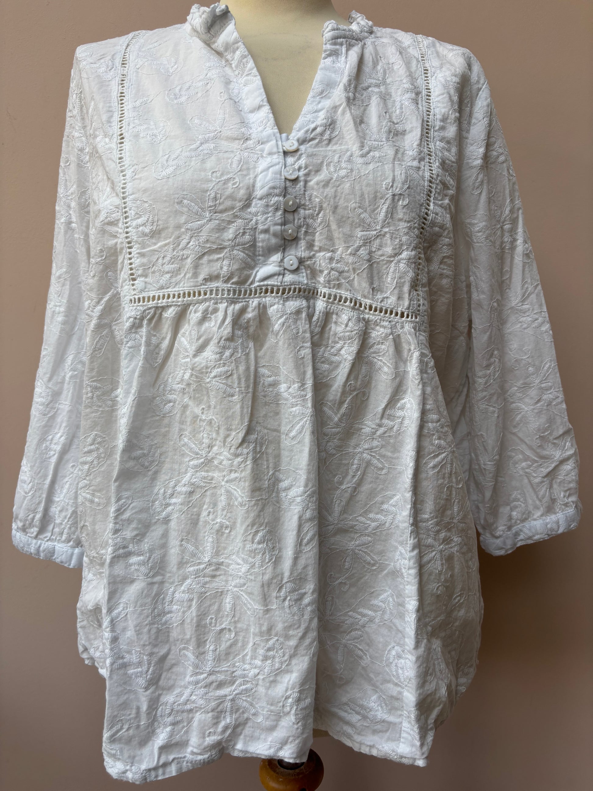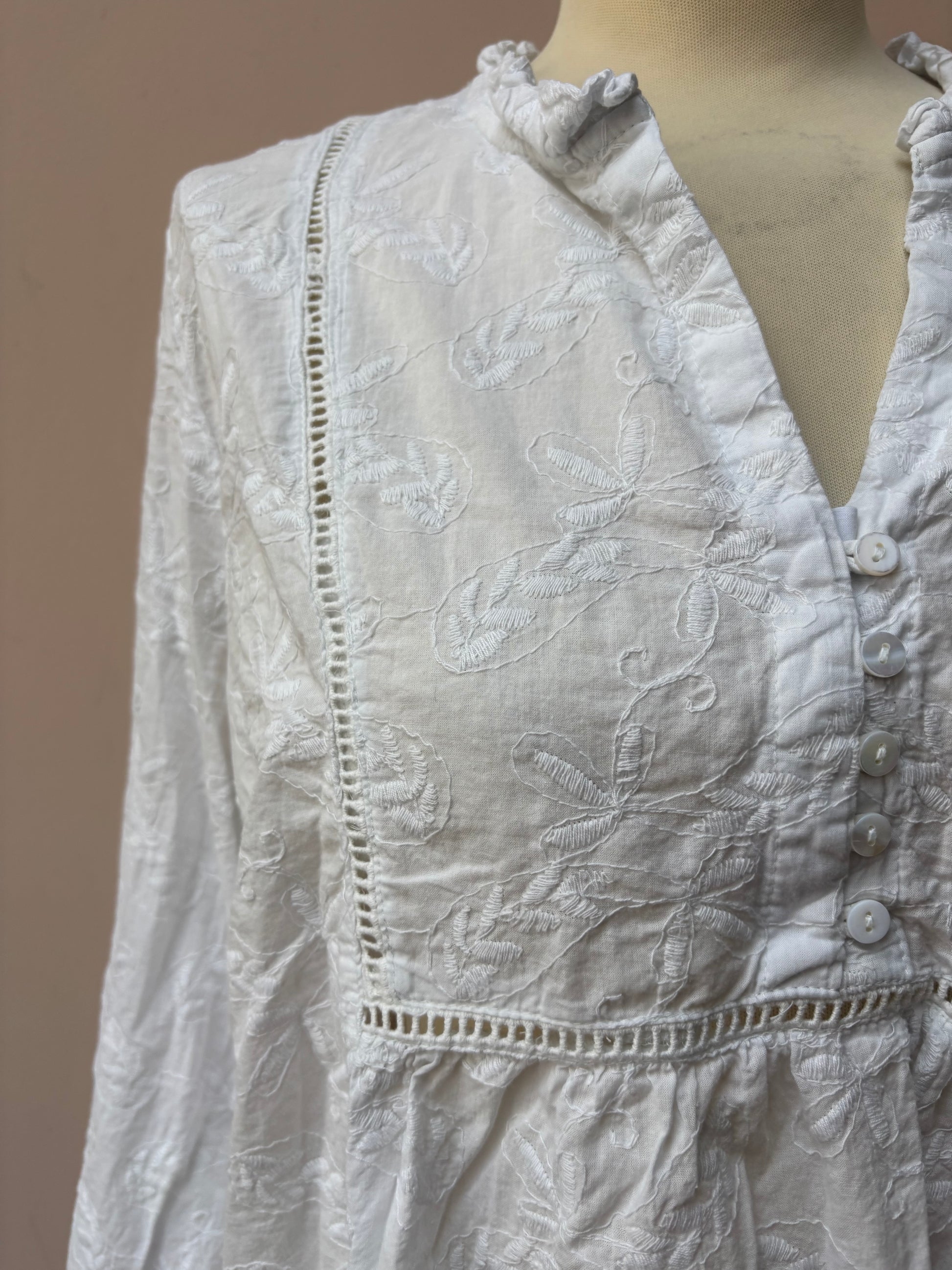 White embroidered 100% cotton blouse size 18